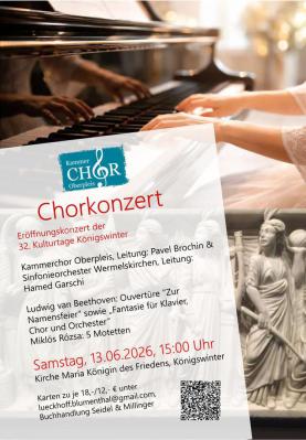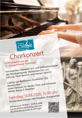 Samstag, 13.06.2026, 15.00 Uhr, Kirche Maria Königin des Friedens, Cleethorpeser Platz 1, 53639 Königswinter